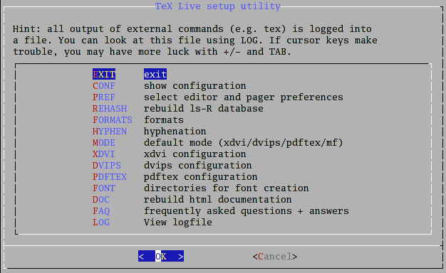 # cd /mnt/cdrom/texlive2004 # sh install-tl.sh